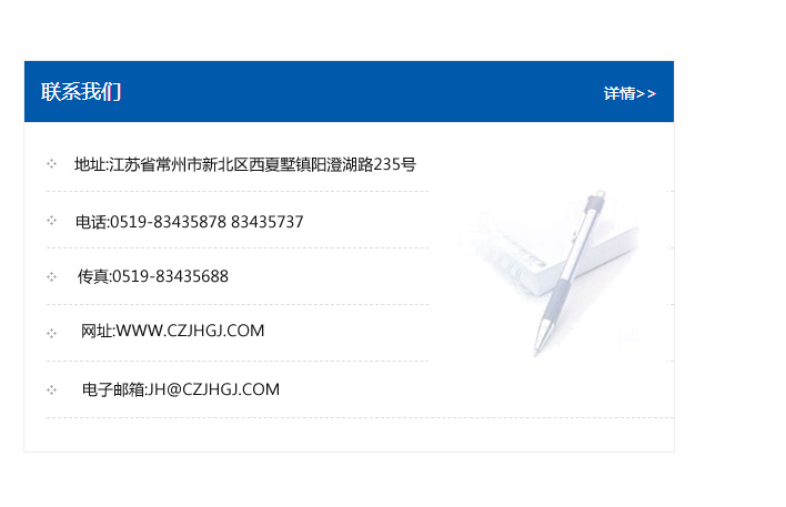 傳真:0519-83435688    郵編:213135    網址:WWW.czjhgj_com.lhhphg.com    電子郵箱:JH@czjhgj_com.lhhphg.com